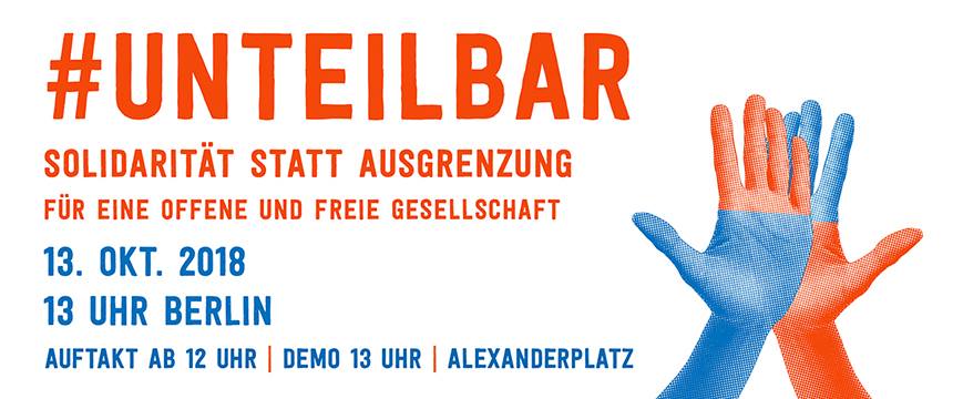 #unteilbar Für eine offene und freie Gesellschaft – Solidarität statt Ausgrenzung Demonstration: 13. Oktober 2018 – 13:00 Uhr Berlin